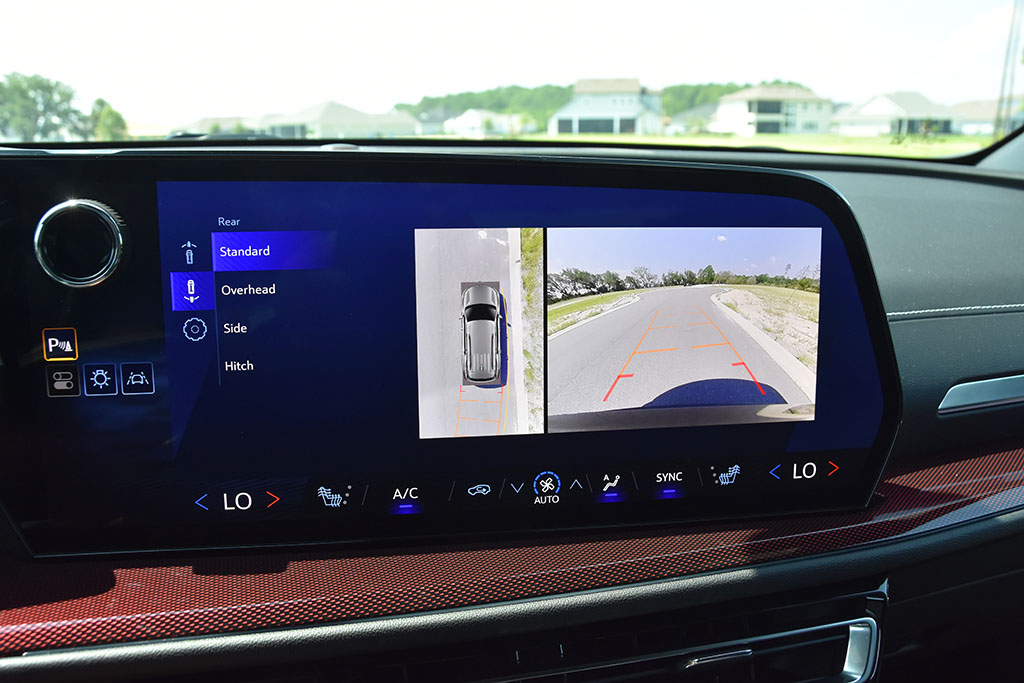 There’s a welcoming set of physical automatic climate controls below the screen and center-front vents. The controls are redundant as you can control the system through the lower portion of the touchscreen. The large volume knob is a nice touch as it hovers over the top left portion of the touchscreen, which is a dedicated area to quickly access essential vehicle functions, such as the headlights, surround-view camera system, and even the onscreen button to disable lane keep assist.