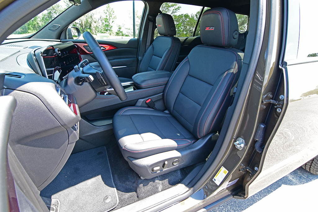 The new Chevrolet Traverse elevates safety somewhat with the availability of Super Cruise, which proved to be quite intelligent with the ability to automatically change lanes when necessary and even nudge slightly to the opposite side when passing a larger vehicle. You get the typical bundle of highlighted active safety features, such as lane departure warning/lane keep assist, blind-spot monitor, parking sensors with rear cross-traffic alert and emergency braking, forward collision warning/emergency braking, a 360-degree surround camera system, and adaptive cruise control. There’s also a buckle-to-drive setting that, when enabled, will require that front passengers buckle their seatbelts before you’re able to drive off.