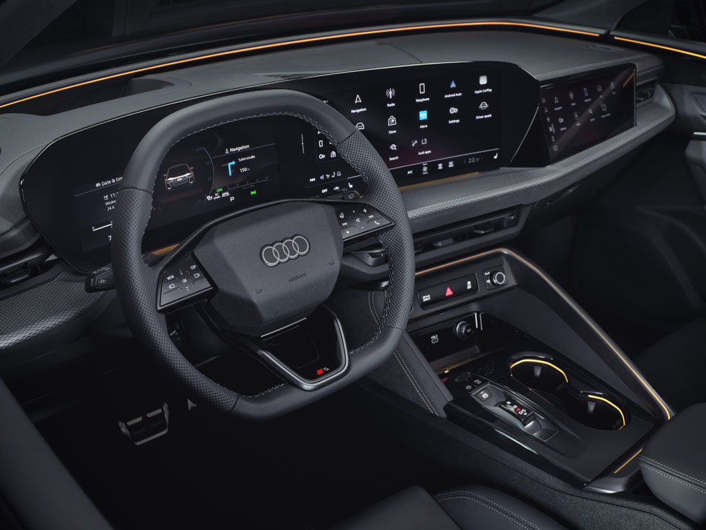 Inside, the new Q5 combines Audi’s contemporary design cues with a nod to the brand’s heritage of well-crafted, durable interiors. The cabin is filled with sharp lines and angular surfaces, offering a driver-focused layout that is both functional and aesthetically pleasing. Notable features include USB-C ports for front and rear passengers, an inductive phone charging pad, and a range of controls for mirrors, seats, locks, and lights.