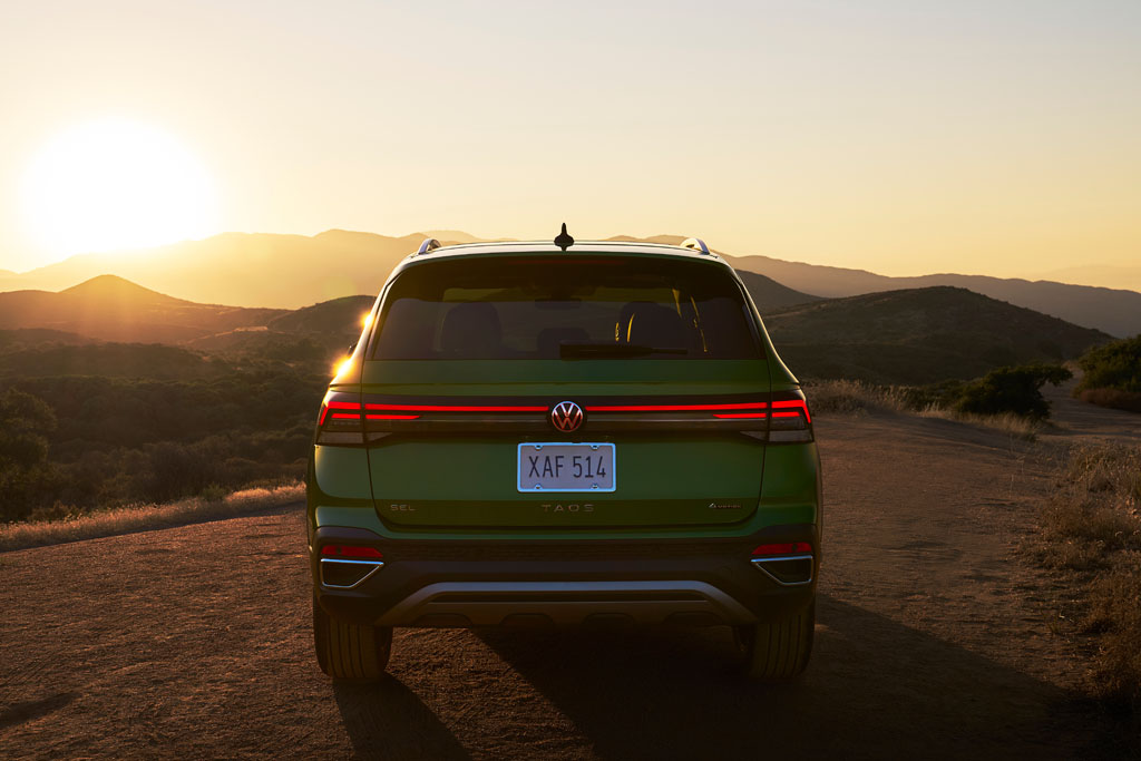 Around the back, you’ll notice a similar treatment with a new light bar connecting the redesigned taillight housings. These small yet impactful changes give the Taos a more modern appeal while maintaining the SUV’s practical dimensions. New color options—Bright Moss Green, Monterey Blue Pearl, and Monument Gray—further expand customization possibilities for buyers looking to stand out.