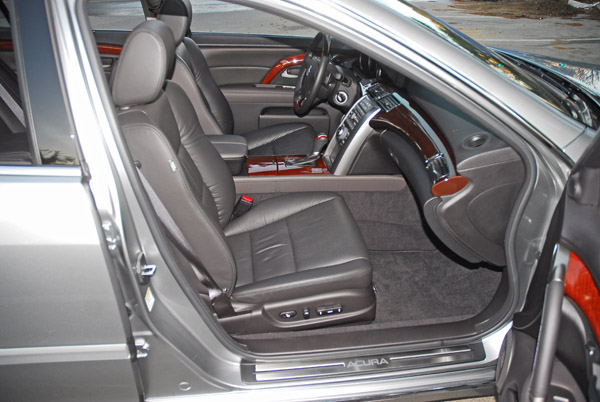 The 2010 RL’s exterior styling has been constantly updated making it distinctive and upscale front, side and back. The RL’s athletic style gives an indication of the power concealed under the hood and features Acura’s signature front grille. Love it or hate it, it works getting fresh air into the engine. The front fascia also features unique lamp clusters with HID adaptive headlamps, daytime running lamps and just below another air intake to keep the engine cool when running. Nicely formed foglamps have chrome bars through the opening. Below the bumper is aerodynamic enhancements to help keep airflow smooth during high-speed travel. The side shows raked A-pillars, a flat roof that quickly dives to the high-backed trunk lid with formed lip spoiler that helps keep the rear firmly pinned to the road at high speeds. Pull-out door handles make it easy opening the wide-opening doors and just below is a tasteful chrome strip that runs the length of both doors, followed down below with lower side extensions giving the RL a lower center of gravity further enhancing stability. The rear highlights include wraparound lamp clusters, a brushed aluminum horizontal bar running the length trunk, RL and SH-AWD badges, and two wide-octangular styled, polished stainless steel exhaust tips. Under the rear bumper is another flat aerodynamic enhancement to help better manage airflow out the rear when traveling at high speeds.