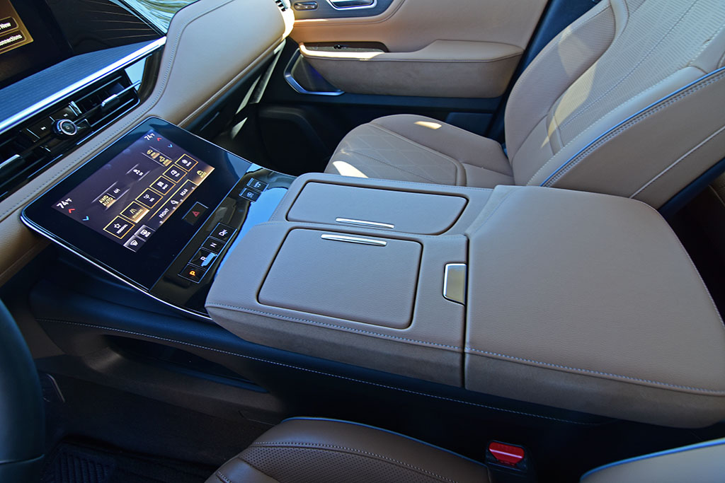 The newly redesigned QX80 turns everything up a few notches for a new position in the luxury spectrum that features a cleverly reworked cabin. Throughout, there’s an abundance of soft-touch surfaces, leather-wrapped areas with accented stitching, and subtle trim accents. In my QX80 Sensory trim test vehicle, the interior was plush but with somewhat of a soft approach instead of in-your-face contrasts. Such vibrant contrasts seem to be more reserved for the top-level Autograph trim. However, there’s a lot to appreciate in the luxury theme of the new QX80, regardless, which starts with the heated, ventilated, and massaging front seats now with a good amount of adjustability for better positioning for people who are over 6 feet tall, like me. The outgoing QX80 always felt constrained by limited front seat aft adjustment, in my opinion. All of that is fixed now as you can bring up additional seat controls through the new large 14.3-inch touchscreen display.