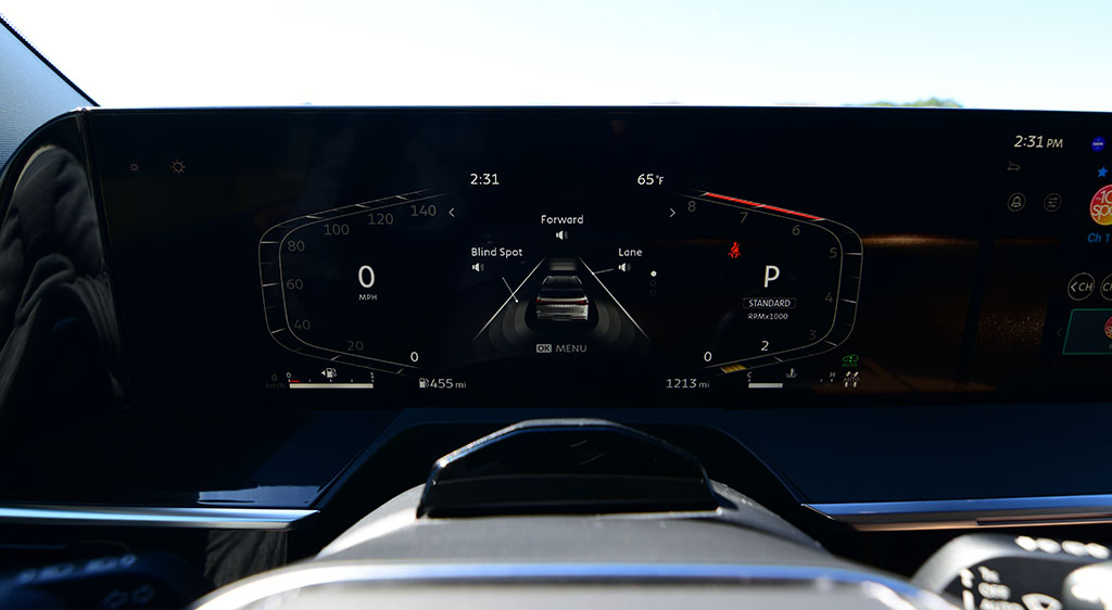 Infiniti was once known to push some technological boundaries, being one of the first to introduce new advancements, such as a 360-degree surround-view camera system and a creative lane departure mitigation system. Now, Infiniti keeps on pace with the rest in bringing advancements like the latest ProPilot Assist 2.1 system, which is Infiniti’s version of a hands-free driving system via pre-mapped roads comparable to GM’s SuperCruise and Ford’s BlueCruise. In testing the system, it worked well on one local highway and Interstate 95 here in Florida. Overall, the system seemed to keep well within the lanes and always displayed the proper status of what the system was detecting on the road, from the type of lane markings to the neighboring vehicle types, all in the digital gauge cluster. The color head-up display would mimic some of the system’s status, clearly displaying when you can allow the system to drive hands-free. The system would abruptly alert you to take control or face forward through the gauge cluster and head-up display. The lane change function was somewhat confusing at first, and would often ask for you to take control of most of my lane change attempts after a confirmation press of the steering wheel lane change button.