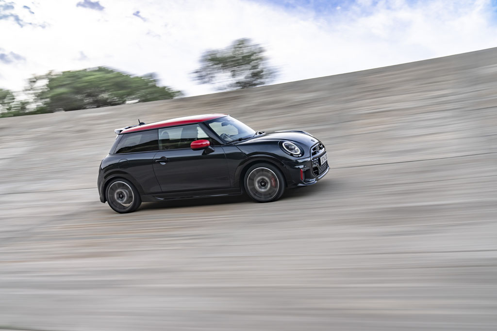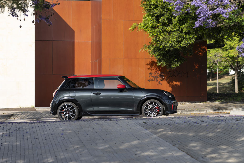 MINI has refined the JCW’s exterior design with a focus on performance and aesthetics. A standout addition is the centrally mounted JCW exhaust system. Paired with red brake calipers and new alloy wheel options, the exterior styling is aggressive but unmistakably MINI.