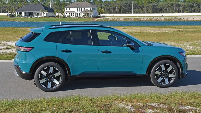 Ride quality is pretty good, much better than something like the Ford Mustang Mach-E, while you’re treated to an eerily quiet cabin. Out on the road, the Prologue AWD Elite is surefooted and feels mostly hunkered down, which is partly a characteristic of its meaty 275/45R-21-inch Bridgestone Alenza tires wrapping the cheeky-styled 21-inch aluminum wheels. Here, there seems to be a lot of tire making contact with the road, possibly creating a bit of extra rolling resistance than competitors. Such resistance may cost some range, whereas the Prologue AWD Elite has a range of 273 miles at a full charge. During my tests all week long that range figure seemed to be spot on for using local highways. However, city driving seemed to greatly extend the range where I was on pace to get as much as 290 miles out of a charge.