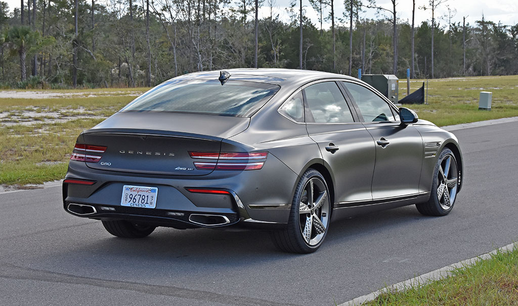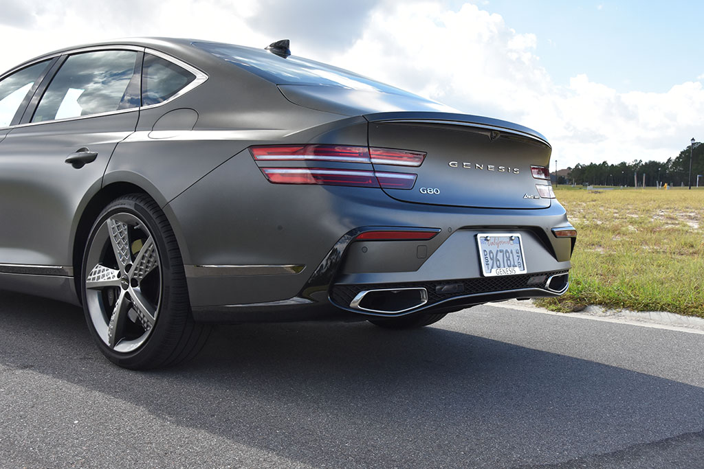 Where things get very interesting, on the good side of interesting, is the new four-wheel steering, where the rear wheels steer in the opposite direction from your steering input at lower speeds and then delicately steer in the same direction and highway speeds. The four-wheel steering may feel a bit aggressive to some at times, but it helps to greatly reduce the turning radius and adds a newfound level of agility when combined with the rear electronic limited-slip differential if you ever push the G80 close to its limits to power out of turns with a little rear end sliding.