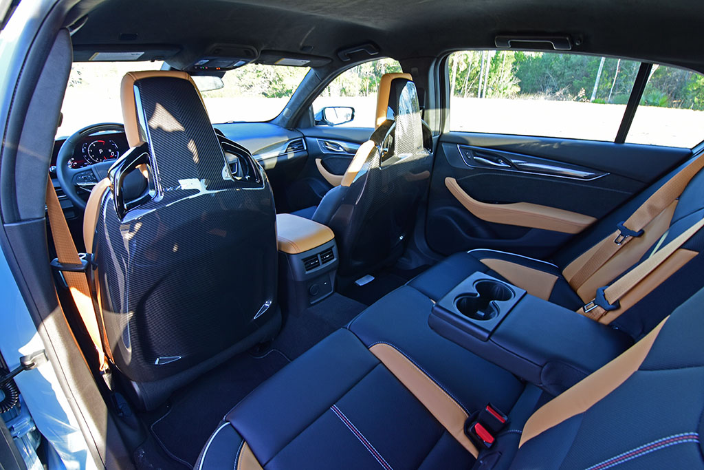 Seating areas remain the same as in previous years, offering up delightful bucket seats in my test vehicle, including heating, ventilation, and back-area massaging. Somehow Cadillac has managed to make the most comfortable performance buckets around that aren’t punishing despite their aggressive and thin look. The power-adjustable bolsters are also a nice treat to fundamentally mold to most body sizes and keep you in place without sitting in fatigue on long trips.