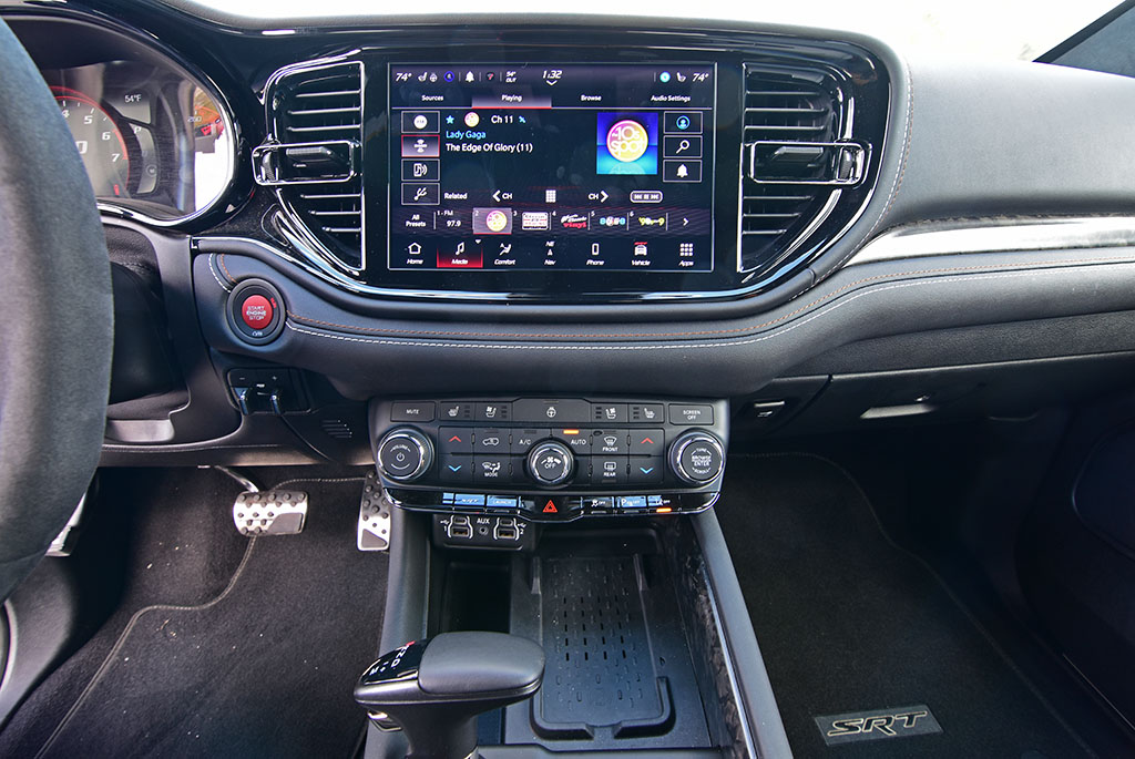 There’s some comfort found in any Durango, but with the Hellcat factor, that comfort becomes transformative and often a bit lofty with the adaptive dampers that have three settings dialed up from a rather intricate SRT performance settings menu. You can dial up just the right flavor of your liking from the default Automatic drive mode or a Custom mode to save your selected driving dynamics, from the steering effort to the suspension damper settings.