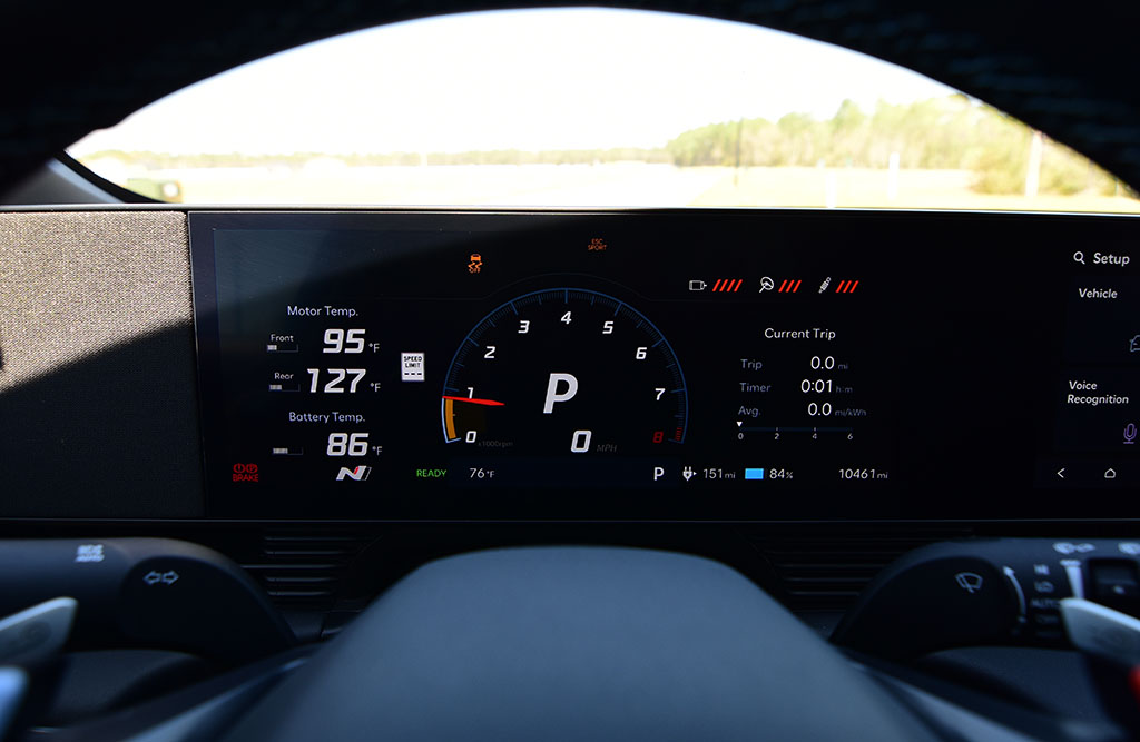 As far as efficiency, the Ioniq 5 N remains true to its electric roots but tends to have a short range, averaging 221 miles. That range can be somewhat extended when driving conservatively in the Eco drive mode, but you’ll expect to visit the charging station on trips often to take advantage of Hyundai’s fast charging system that legitimately reaches 80% state of charge from about 10% in just 18 minutes utilizing a 350 kW DC fast charger. At home, using my Level 2 charger, it takes just over seven and a half hours to fully charge the Ioniq 5 N. The EPA estimates of 84 MPGe city, 72 MPGe highway, and 78 MPGe come to an average of about 2.3 miles per kWh. Overall, my calculations stated I was on track to muster out 195 miles of total range but chickened out with about 20 miles of range left to end up at home to charge up – and that was with mixed 50/50 city and highway driving.