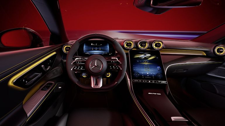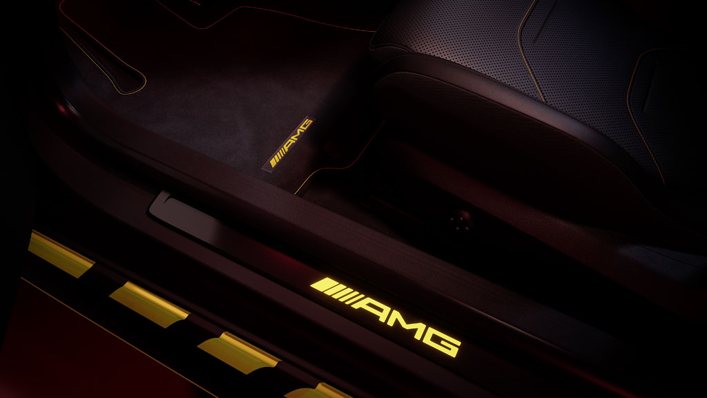Inside, the design flair continues. Both versions get AMG Performance Seats wrapped in Nappa leather—black with yellow stitching for the coupe, and white with black accents for the cabriolet. Carbon fiber accents dot the interior, and illuminated AMG door sills add a bit of nighttime drama. It’s a cabin that’s more fashion show than race day—but still unmistakably AMG.