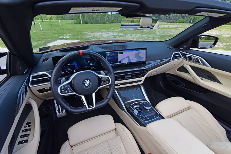 While the front-end styling of the BMW 4 Series remains an objective subject, the subtle active grille tweaks, color combinations, and decent proportions all make it more agreeable to the eyes, even if it’s still an acquired taste for a select few. Overall, there’s a welcomed classiness about the BMW M440i Convertible, which you tend to pay good money for with how the latest pricing is structured. As such, my nicely equipped test vehicle comes to $78,345, which includes a $995 destination charge ($72,250 starting price). Such a price is rather healthy and something to consider even when you compare the lower-trimmed BMW 430i Convertible that I reviewed a few months ago at a price of $67,000 ($58,700 starting price). BMW seems to slightly undercut the Mercedes pricing for a comparable Mercedes-Benz CLE 450 4MATIC Cabriolet starting at $75,800 while the lower trim Mercedes 300 4MATIC Cabriolet starts at $66,450.