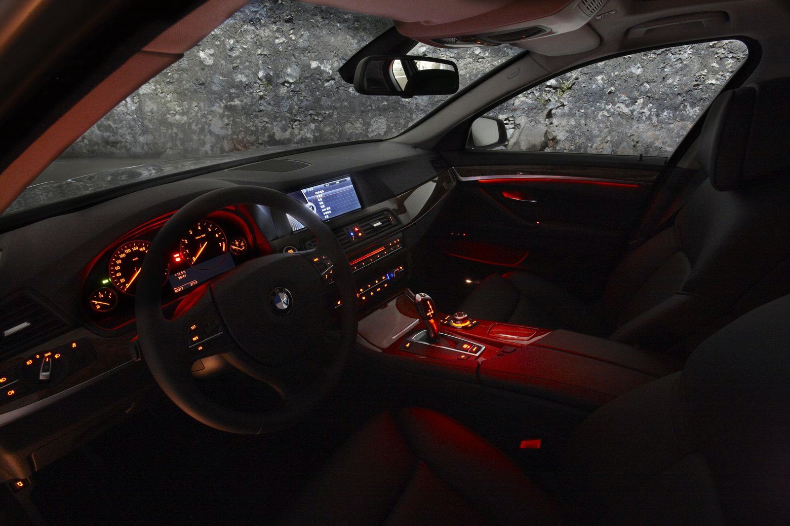 Inside, the long-wheelbase version of the new BMW 5 Series Sedan creates a strong impression of technically demanding functionality within an ambience of sheer elegance and superior modern style. The luxurious surroundings and the high standard of features and equipment set the foundation for a level of grand touring comfort quite unique in this segment. The particular design of the cockpit and centre console emphasises the clear orientation of the interior to the driver, just as the displays in Black Panel technology in the instrument cluster as well as the iDrive control system naturally featured as standard contribute to the supreme driving experience.