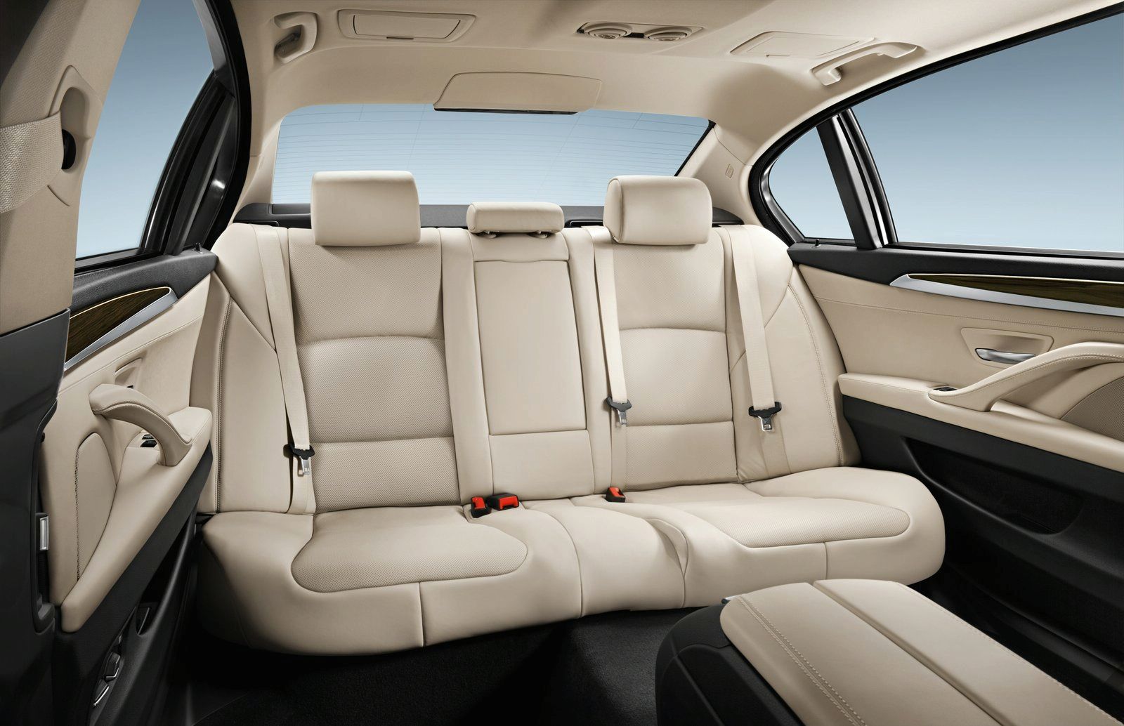 The BMW 528Li and BMW 535Li come at the rear as standard with a control unit for the audio system comprising a Controller integrated in the centre armrest. Folding, illuminated vanity mirrors as well as two cupholders each on the front and rear seats likewise come as standard features. A special reading light at the rear and a cooling box opening up after the passengers have moved down the centre armrest are available as options.