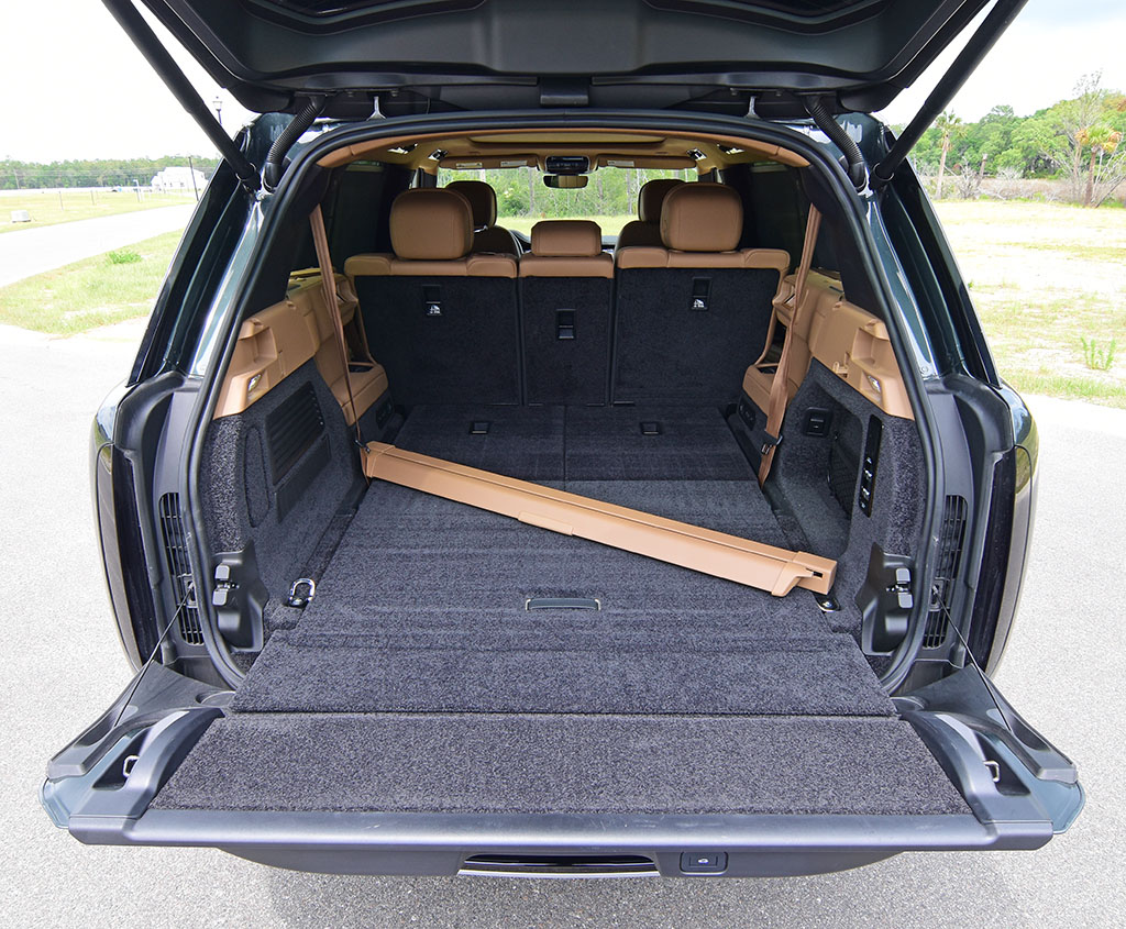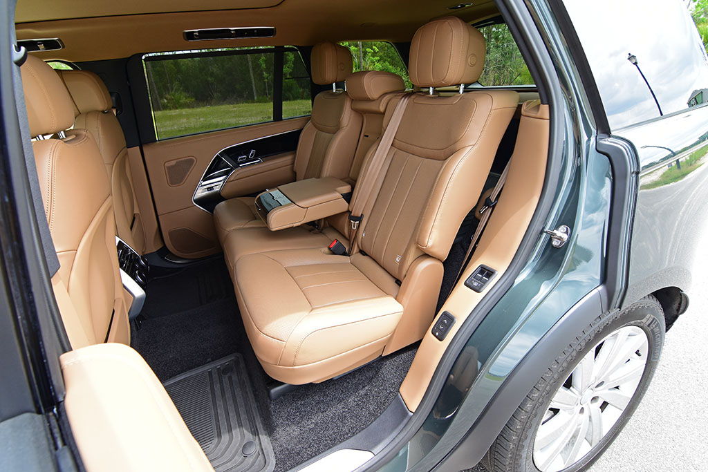 The seating areas are plush and comfy with the one exception being the third row remaining on the smaller side. The second row seats have power adjustments and quickly motor out of the way via for easy third-row access. There’s a welcoming isolation from the outside, not only from the hushed cabin but a sensation that you’re encapsulated in a British tank – albeit an exceptionally luxurious tank. Having the 7-seating configuration, the Range Rover LWB gives the second row an extra bit of spacing, nearly on the verge of acting as a small limo. Such a concept carries over well to higher trims of the Range Rover to provide the expected ultra-luxury appointments for the rear passengers, surpassing my base-level trim test vehicle, followed by a much more substantial price tag, as you can imagine.