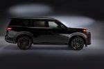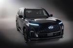 Replacing the outgoing Sensory trim, the new QX80 Sport sits high in the model lineup, just under the top-tier Autograph. It introduces a more sinister aesthetic to the full-size luxury SUV, complete with a revamped front grille that features straighter vanes and a redesigned bumper wearing a subtle splitter. All exterior trim, from the mirror caps to the roof rails and Infiniti badging, is now finished in black. It rolls on exclusive 22-inch black six-spoke wheels that complete the blackout effect.