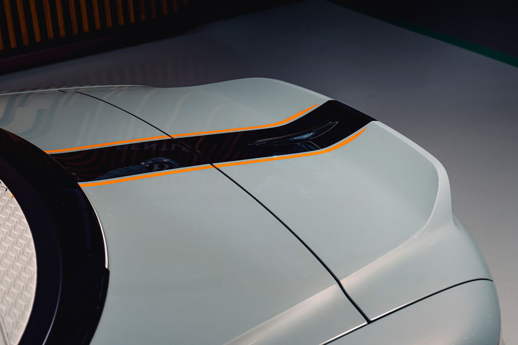 Its beauty begins at the surface. A shimmering Opalite finish is trimmed in Beluga and Mandarin hues, complete with a bold central stripe and fine-lined accents. Inside, the theme of contrasts continues with asymmetrical leather in deep black on the driver’s side and pristine linen on the passenger’s. Even the rear compartment hides a plush, two-piece set of luggage, blending tones that mirror the cabin.