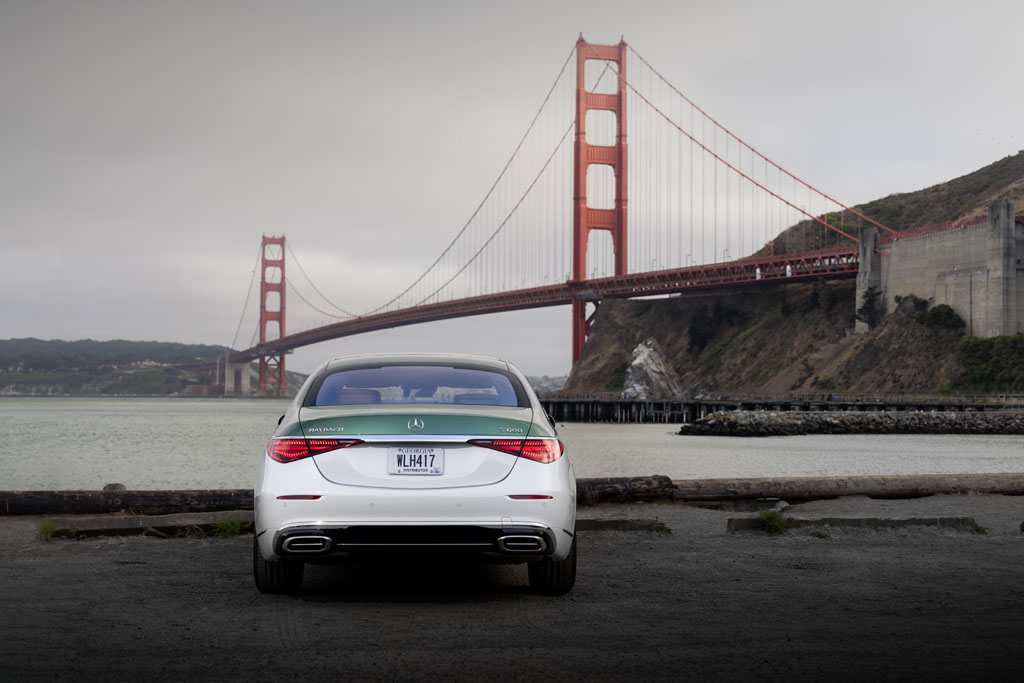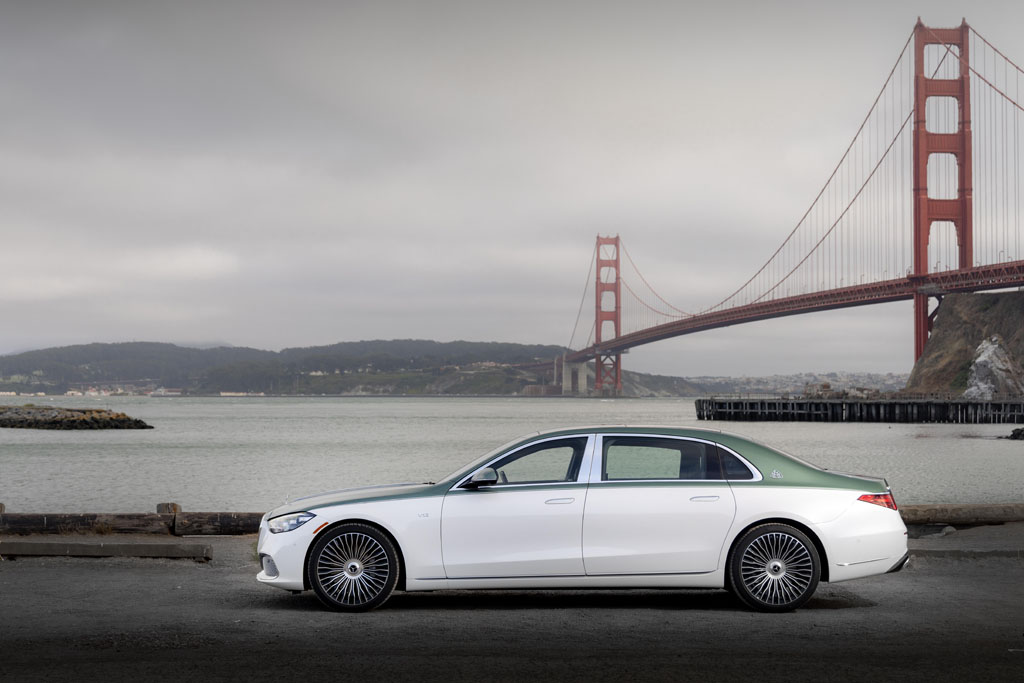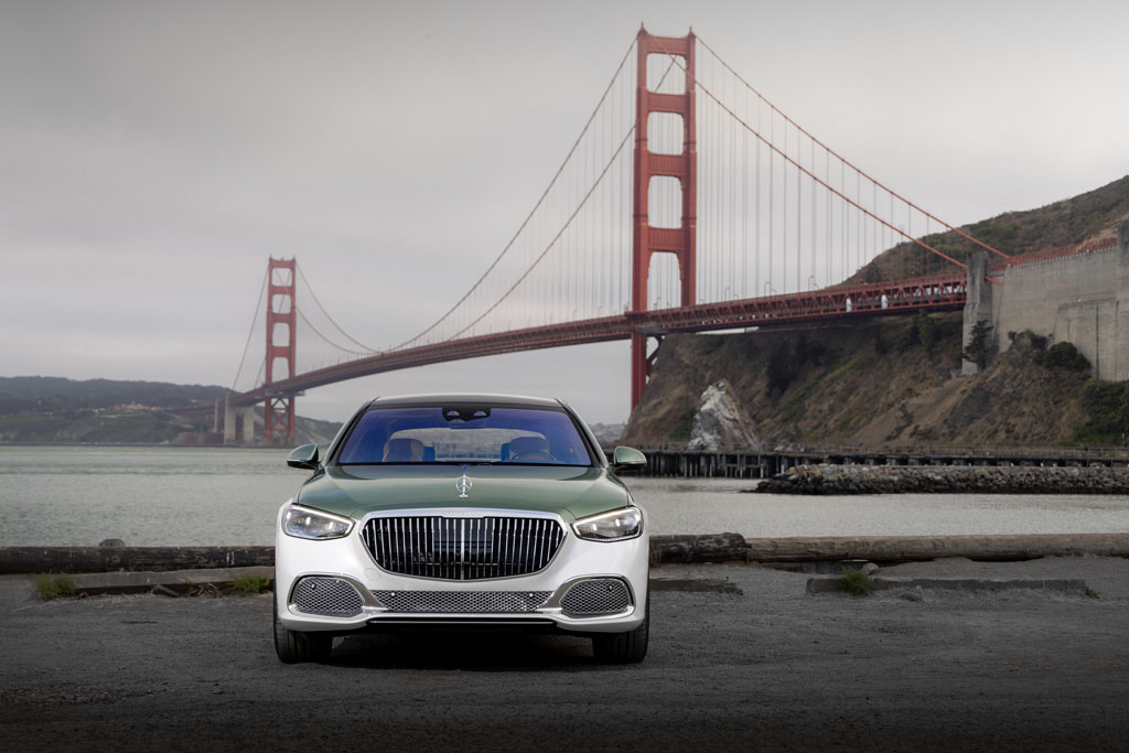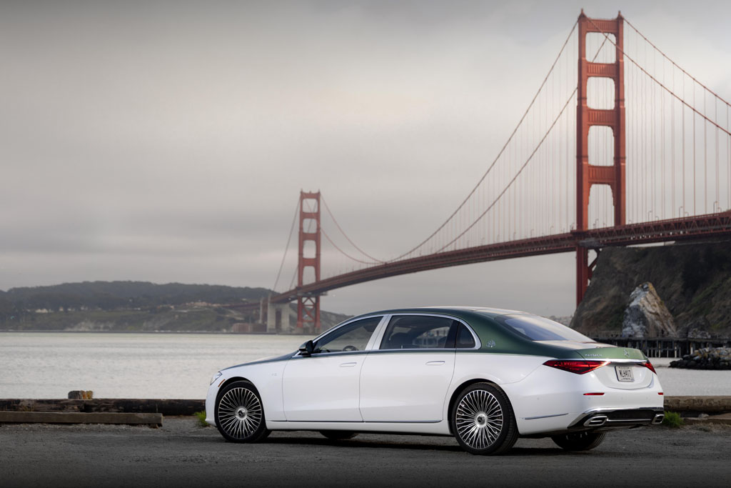 The exterior draws its inspiration from Monterey’s windswept cypress trees and white sandy beaches. A special two-tone finish pairs MANUFAKTUR Exclusive Mid Ireland Green Metallic with MANUFAKTUR Moonlight White Metallic, applied with meticulous precision at the MANUFAKTUR facility in Sindelfingen. Chrome accents and 21-inch Maybach Exclusive Champagne Flute Multi-Spoke Forged wheels complete the serene yet striking look.