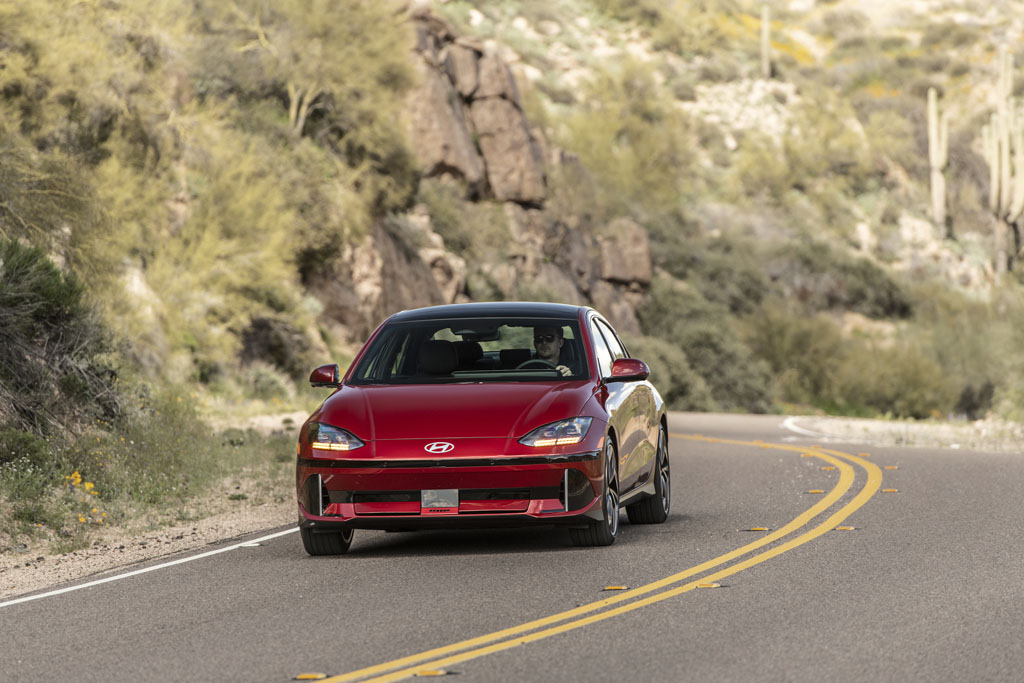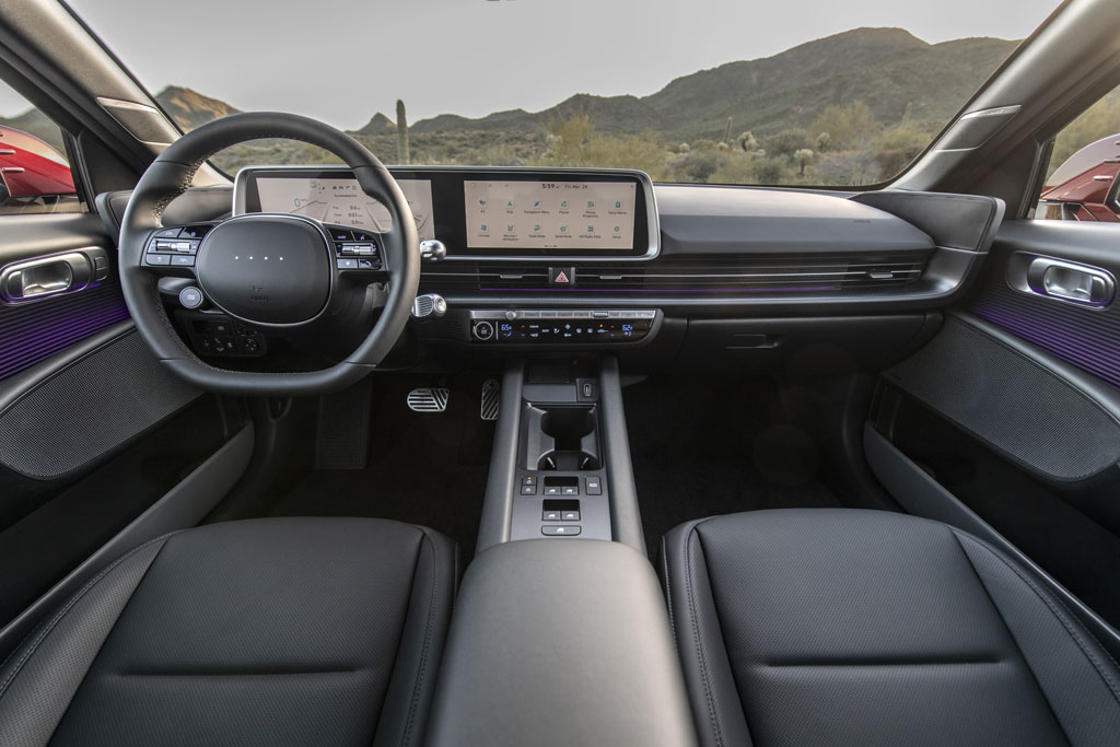 Remaining at the forefront of safety, the Ioniq 6 Limited combines all of the expected active safety features and takes the autonomous driving case up a small notch with its Highway Driving Assist (HAD) system, but still requires a hand on the steering wheel. Otherwise, there’s the welcoming, unique feature of having the blind-spot monitor that displays a live camera feed of the blind spot in the digital gauge cluster when you signal, along with a 360-degree camera setup for backing up or parking.