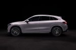 Mercedes is clearly leading with design this time. The brand heard the feedback on earlier EQ models and pivoted to a cleaner, crisper shape that still hits a slippery 0.26 drag coefficient. Up front the grille is a light show, using 942 backlit dots behind polycarbonate to mimic depth and metal, with an available illuminated star and animated sequences. The rear gets two-piece taillights that can animate while charging or during lock and unlock. Available 21-inch wheels fill the arches, and while overall dimensions are still under wraps, the wheelbase stretches to 117 inches, about 3.1 longer than the gas GLC. That pays dividends in the cabin with a little more front legroom, nearly two extra inches in back, and more headroom all around. The cargo hold measures 20.1 cubic feet behind the second row and expands to 61.4 cubes with seats down, and for the first time in a Mercedes EV there is a front trunk with 3.5 cubic feet of bonus space.