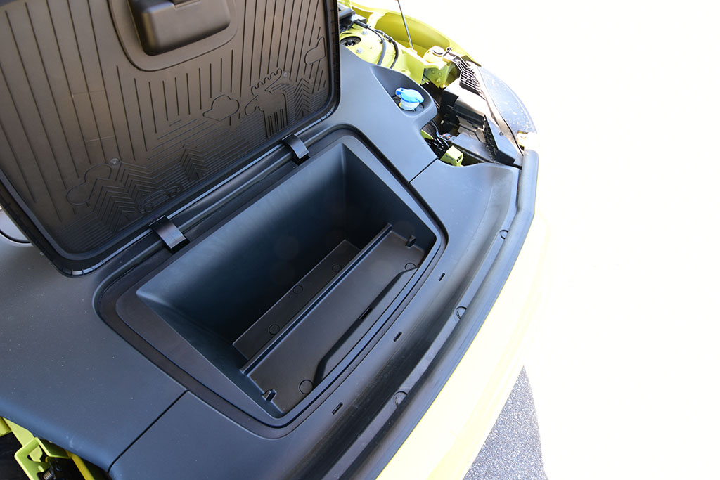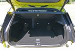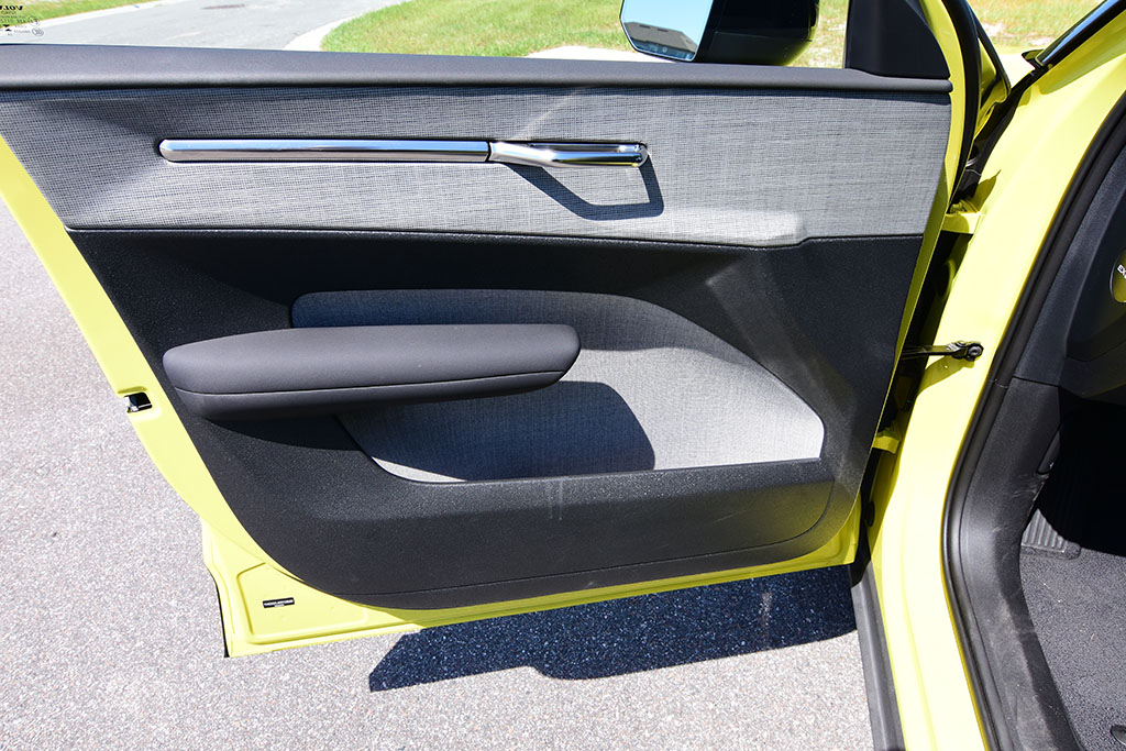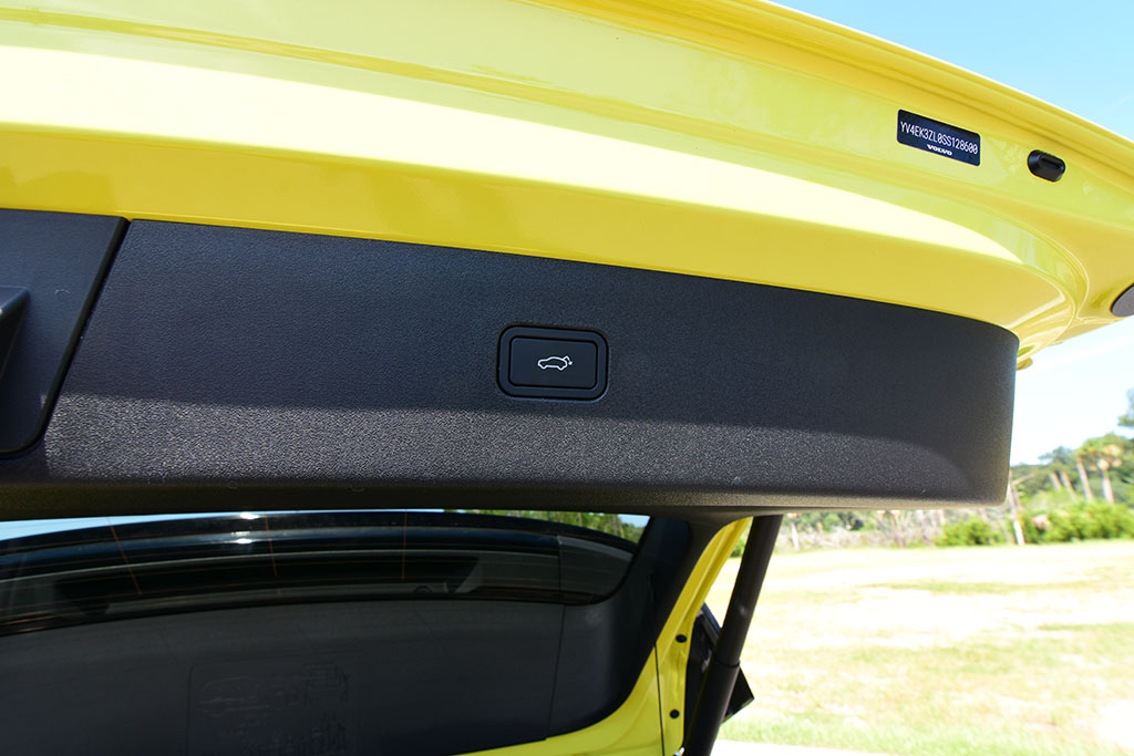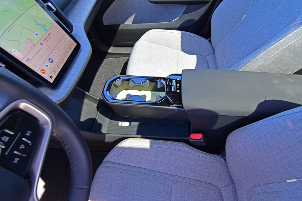 The cabin of the EX30 hatchback-esque design is nicely positioned to be versatile enough to take advantage of every inch, as there aren’t many inches to spare. The unique, nearly-denim-cloth seats are surprisingly comfy for such a small vehicle with many power adjustments – again made more complicated than they should be – just like many other aspects of the EX30. Even though the headrest in the front heated seats is in a fixed position, they are placed perfectly for most adults, even for me, being over 6-feet tall. The rear seating area is short on leg space, but is quite usable for those who don’t position the front seats very far to the rear. There are clever storage areas and a unique cupholder compartment that slides from underneath the armrest, which also houses an eccentric two-button window control in addition to capacitive power lock buttons that you often accidentally press with your arm. The cargo room accessed by a power liftgate is short as well, offering only 12.4 cubic feet with the rear seatbacks up in place. Another part of the EX30 that can be contentious is the large fixed panoramic glass roof that doesn’t have any dimming features or a shade, so the sun beats down on you during those hot days, even with its standard tint and UV-blocking treatment.