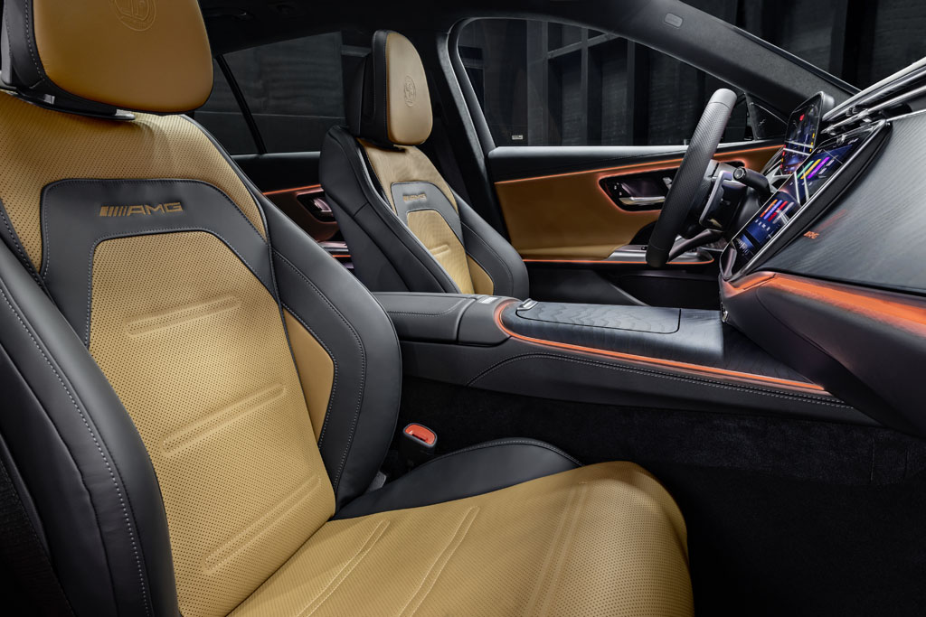 Under the hood sits a turbocharged 3.0 liter inline six paired with a 9 speed automatic and a rear mounted electric motor. The system produces 577 horsepower and 553 pound feet in standard tune, delivered to the pavement through AMG Performance 4Matic all wheel drive with rear wheel steering. An onboard battery enables up to 41 miles of electric only driving, useful for quiet early morning departures or short errands without waking the neighborhood.