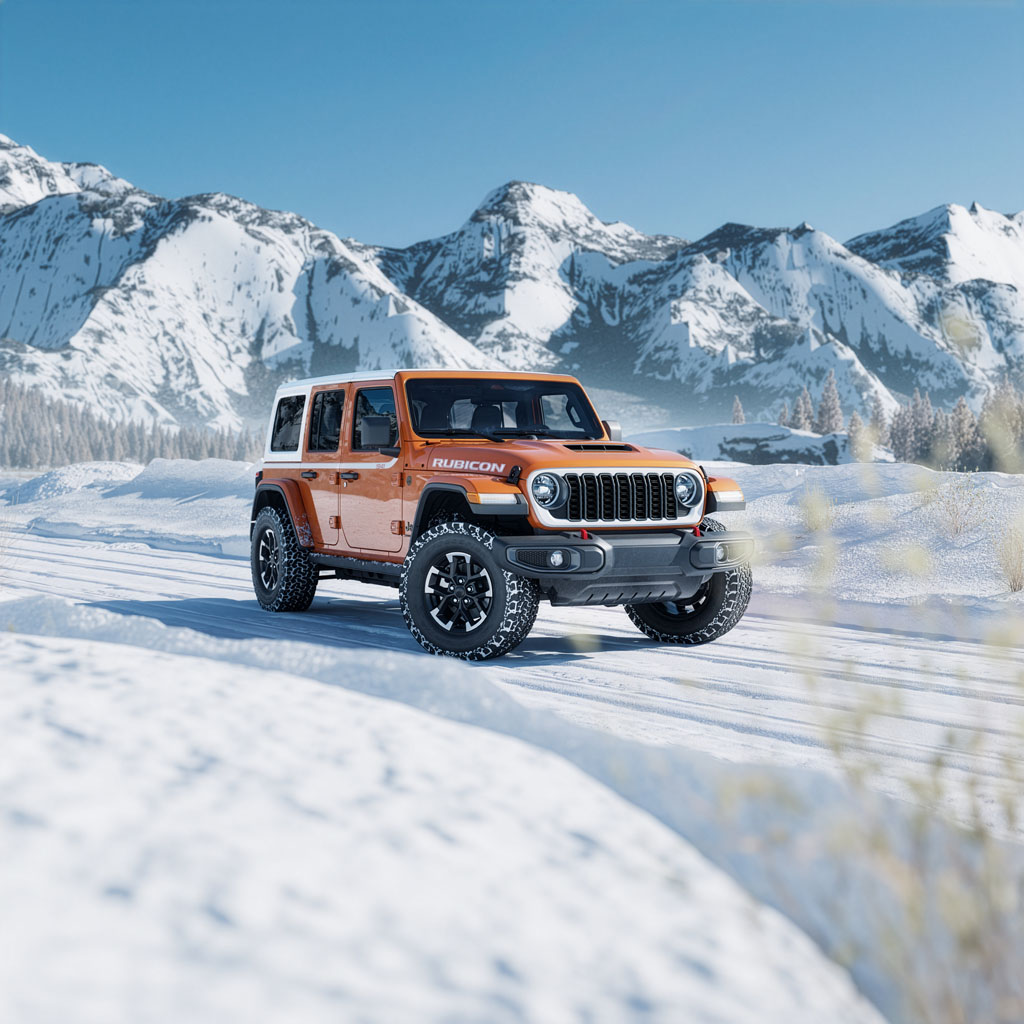 The headline here is the throwback two-tone treatment, inspired by the classic CJ-Universal and its Arctic White top. On the Whitecap, that idea shows up as a Bright White painted hardtop roof and a Bright White painted seven-slot grille for a clean contrast that feels equal parts retro and fresh. Jeep also adds a Bright White 1941-themed graphic, showing up as a side stripe decal on Sahara and Rubicon, while the Rubicon gets a Bright White hood decal. This package is offered exclusively on Wrangler Sahara and Rubicon trims, with body-color fender flares standard on Sahara and packaged on Rubicon.