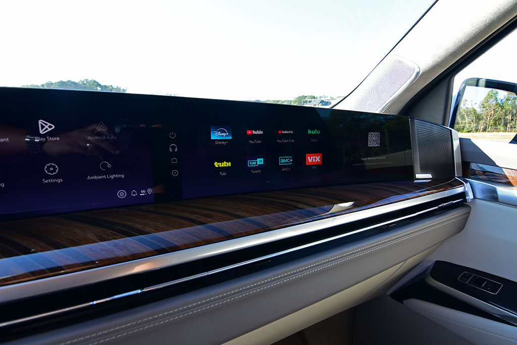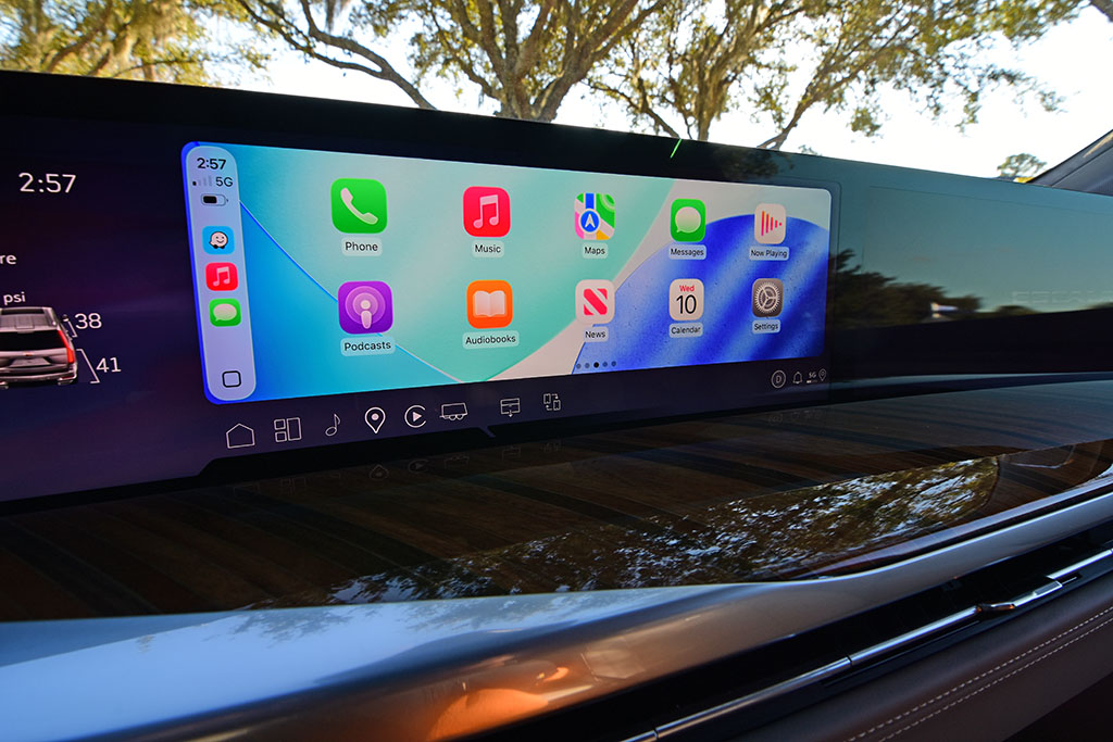 Thankfully, Cadillac retains wireless Apple CarPlay and Android Auto integration through this model year on the gas-powered Escalade, which plays nicely with the new large screen. The front passenger gets to enjoy their own screen as part of the massively wide screen setup, where if they start utilizing the entertainment or streaming functions, it then becomes hidden from the driver to avoid distraction. The second-row touchscreens behind the front seat headrests add to the number of screens to also provide entertainment and streaming features.