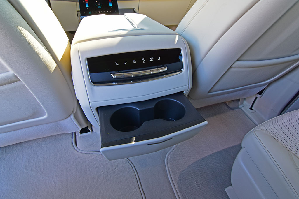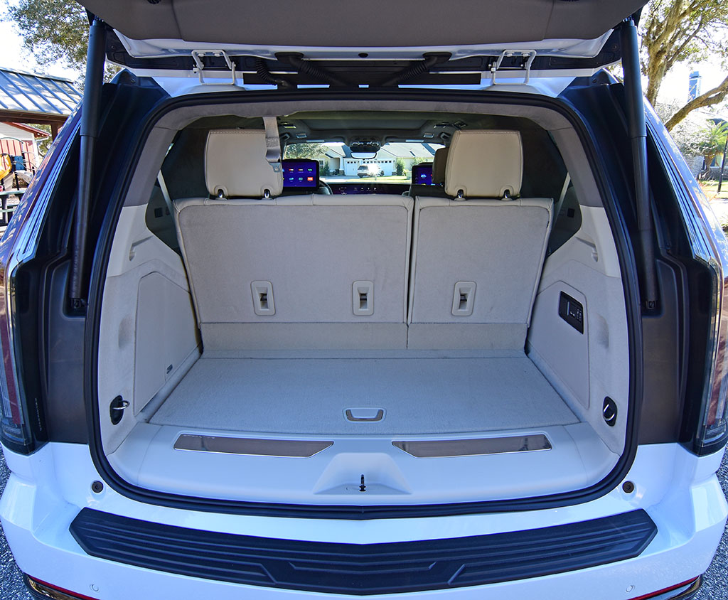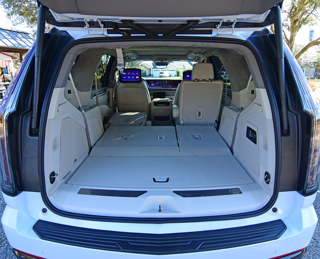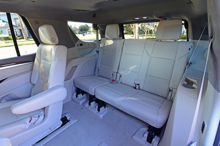 Cadillac, for the second year, offers up executive seating through an option package for the second row seats, providing ventilation, massaging functions, and tray tables, along with a center touchscreen for certain functions like the climate control and power opening/closing doors. My test vehicle this time around did not have this package, but the captain’s chairs with their heating proved to still be quite luxurious and perform the expected folding action to provide access to the large third row seating.