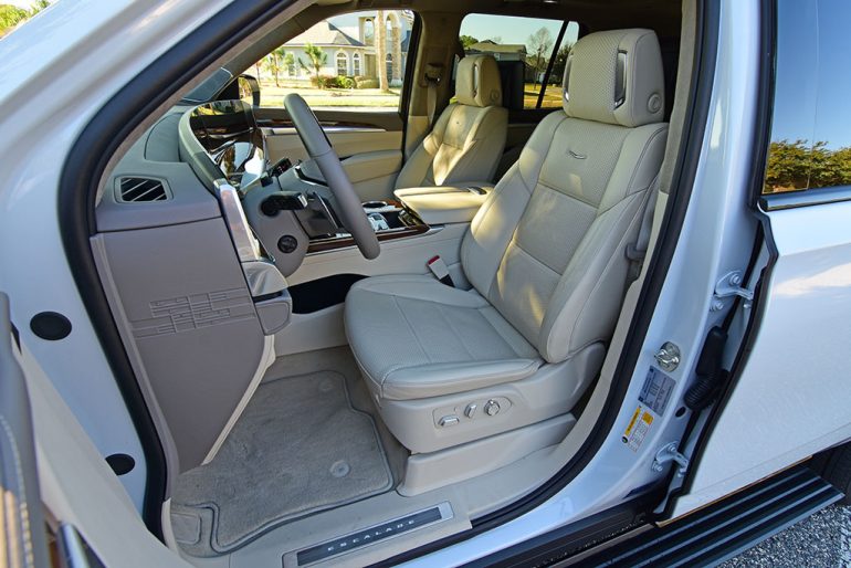 The elevation of luxury is apparent in the new Escalade, and Cadillac attempts to keep things civil, considering how the pricing of other vehicles has been inflated over recent years. With that, the new Escalade in its base trim starts at $91,100, which is up about $3,000 from last year’s nearly identical model year. Moving up to the top Escalade Platinum Sport trim, you’ll expect a price of at least $123,00 with my test vehicle and its Onyx Package and Vibrant White Tricoat paint to come in at $131,970, which includes a $2,595 destination charge.