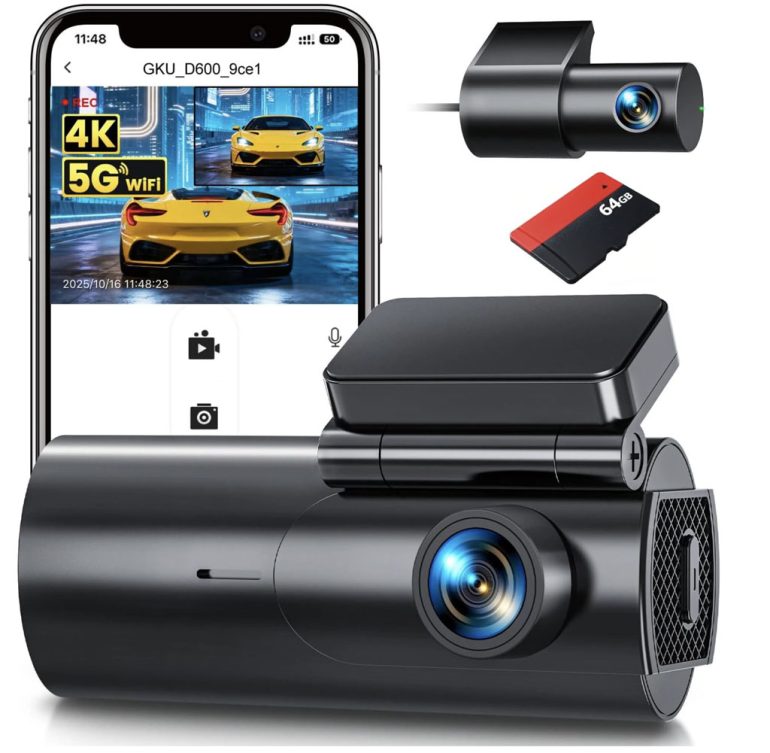 GKU Front and Rear 4K plus 1080P is another compact option, but it stands out for drivers who like having GPS baked into the mix. GPS is one of those features you may never think about until you need to show where you were and when, and it can add useful context if a claim turns into a he-said, she-said situation. This model also keeps things minimal with a small display while still giving you dual-camera coverage, which makes it a nice fit for daily commuters who want protection without turning their car into a rolling tech demo. Check the Price on Amazon for the GKU Front and Rear Dash Cam.
