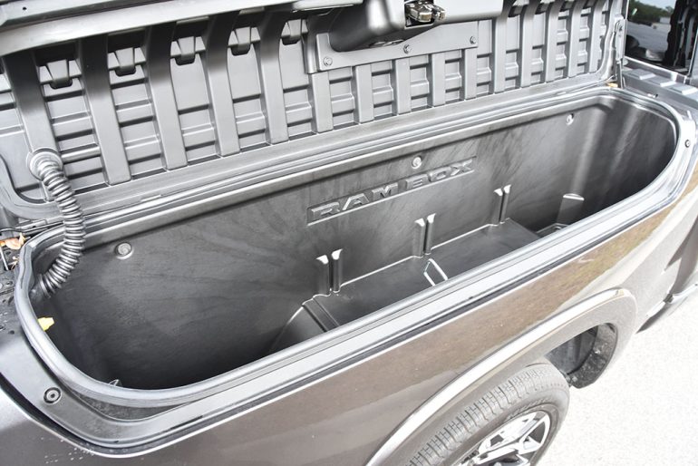 Ram goes the distance for its versatile storage options, having the Ram Box setup out back that tends to take up some bed space, but is rather convenient for placing items in a locked and weather-sealed box that can be easily accessed with just your key fob in your pocket. On the edge of tech, the Ram 1500 now has the hands-free active driving assist system that proved to work quite well, but with the noticeable drawback of allowing activation rather late after demanding the function. Otherwise, Stellantis seems to have a good system that will rival other hands-free driving systems.