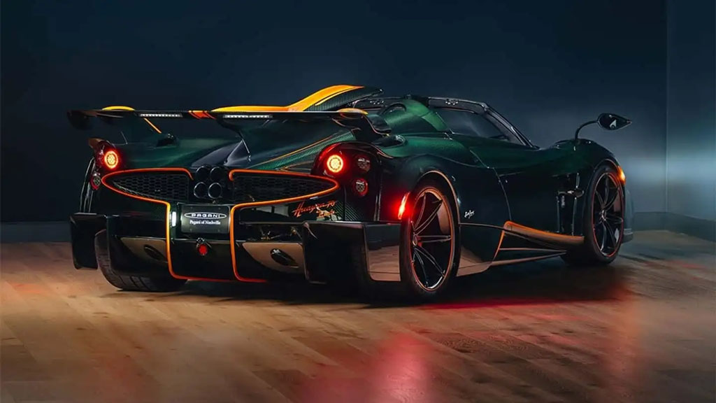 What makes the 70 Trionfo especially wild is how little of the original car actually remains. Pagani says only the doors and window frames carry over, while everything else has been reimagined, including fresh bodywork and a new lighting signature that swaps the Huayra’s familiar quad setup for dual-point headlights that hint at the long-tail Codalunga. Add in the green-and-orange exposed carbon theme and the whole thing reads like a one-off showpiece that somehow still looks ready to attack a runway at full song.