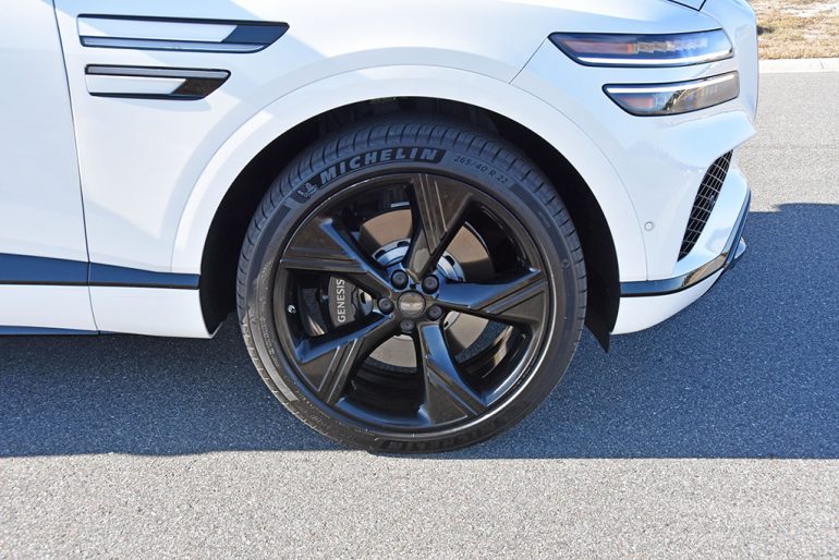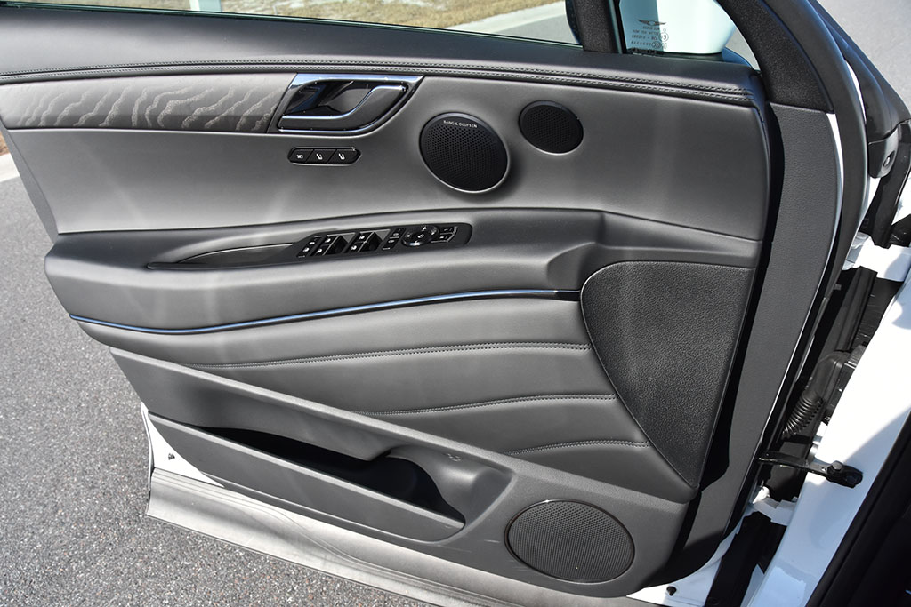 The attention to detail doesn’t stop with all the luxury treats and 22-inch wheels with floating center caps. Inside, there’s a lavish interior with blackened accents throughout, adding a stealth-like appeal to an already plush interior. There’s also a respectable fit and finish, and very limited hard plastics. Genesis even went the distance to make the lower door trim soft touch, something that’s a rarity even in competitive luxury vehicles.