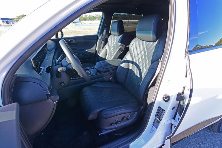 Powering the GV80 is left to the return of its 3.5-liter twin-turbo V6 engine with 375 horsepower, 391 lb-ft of torque, an 8-speed automatic transmission, and all-wheel drive found in the upper trim levels, which is a decent powertrain. Zero to 60 mph ticks off in 5.7 seconds. Coupled with what seems to be a reworked suspension setup with adaptive dampers, the GV80 remains surefooted most times, with only a taste of unassured movements when it is pushed rather hard through turns with abrupt direction and weight shifts. Otherwise, the GV80 3.5T is a smooth operator with a remarkably quiet and plush ride quality, poised for light off-road terrain when utilizing one of the many terrain drive modes.