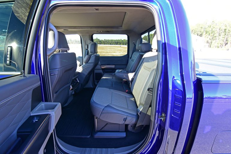 The 12.3-inch digital gauge cluster provides nearly endless information through custom info screens, but doesn’t go the distance to offer mapping functions like some competitors. The 12-inch infotainment touchscreen is the expected latest setup out of Ford for Sync 4 software and includes wireless Apple CarPlay and Android Auto integration. The system is simple and effective with a short learning curve, just the way it should be in my view. One highlight is the Bang & Olufsen audio system that comes upgraded as part of the Platinum trim, which appears to be very powerful, pumping sound through 14 speakers.