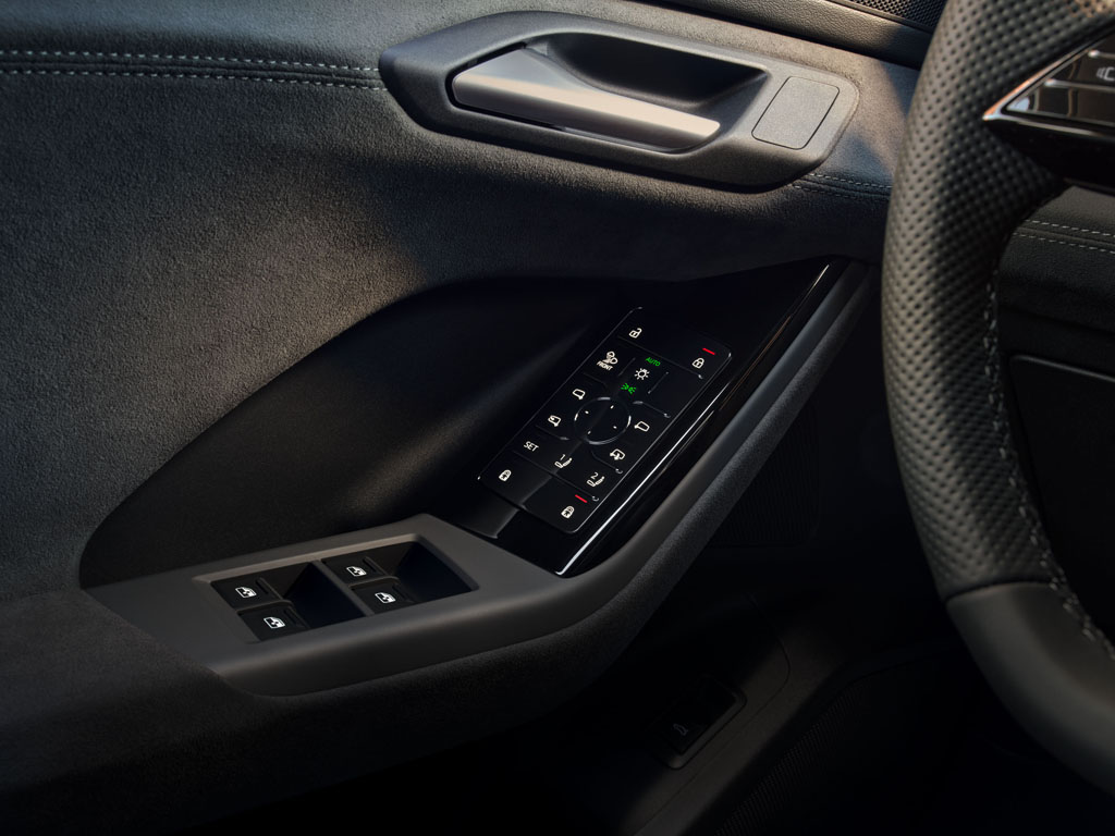 The cabin of the Audi SQ6 Sportback e-tron is a nice space with the traditional feel of what you expect out of an Audi. As such, the tactile button press feeling remains, as you get it mostly from onscreen button presses, and a new control panel on the door trim for your characterized dazzling LED exterior lighting elements and headlights, mirror controls, driver’s seat memory, and door locks. Then, you still have your traditional power window switched further back from that panel.