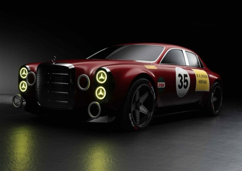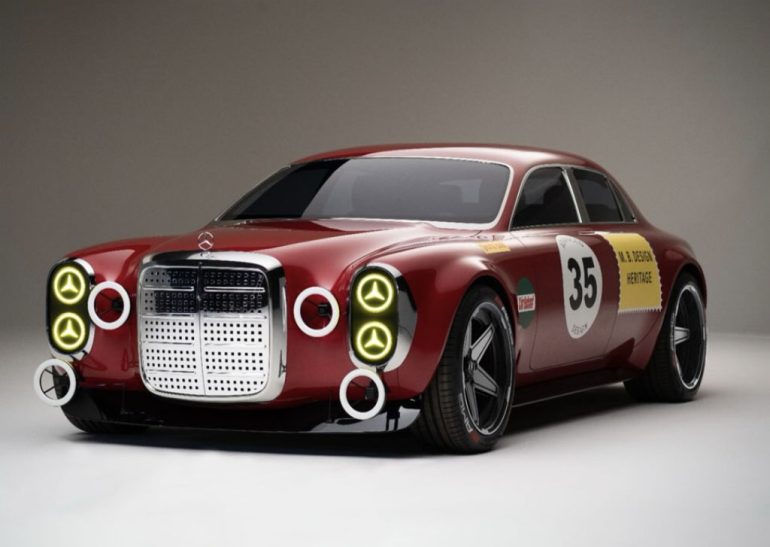 Wagener’s modern take leans hard into that same bold attitude. The front end is dominated by a square, chrome-heavy grille that feels unapologetically old-school, paired with striking yellow lighting elements that nod to the three-pointed star. Add in the brawny bodywork, wide-shouldered stance, and those circular auxiliary lights protruding up front, and it comes across as part heritage racer, part futuristic street bruiser. Even the livery is simplified, just enough to make the reference obvious without turning it into a costume.