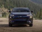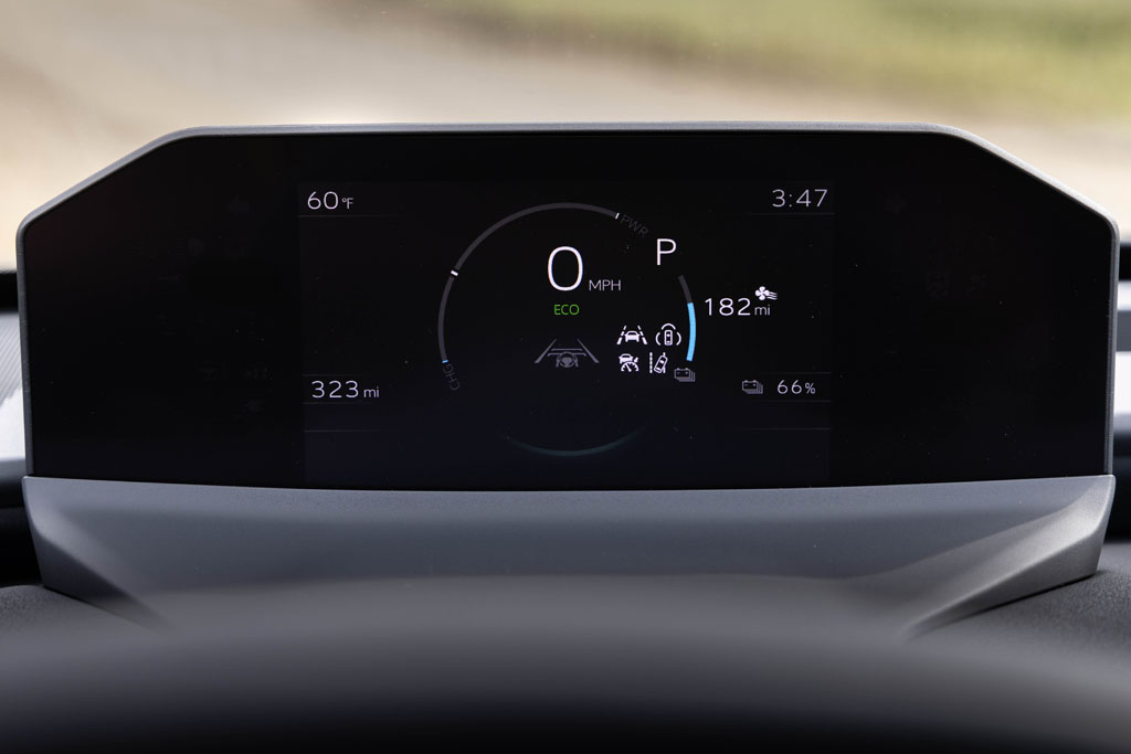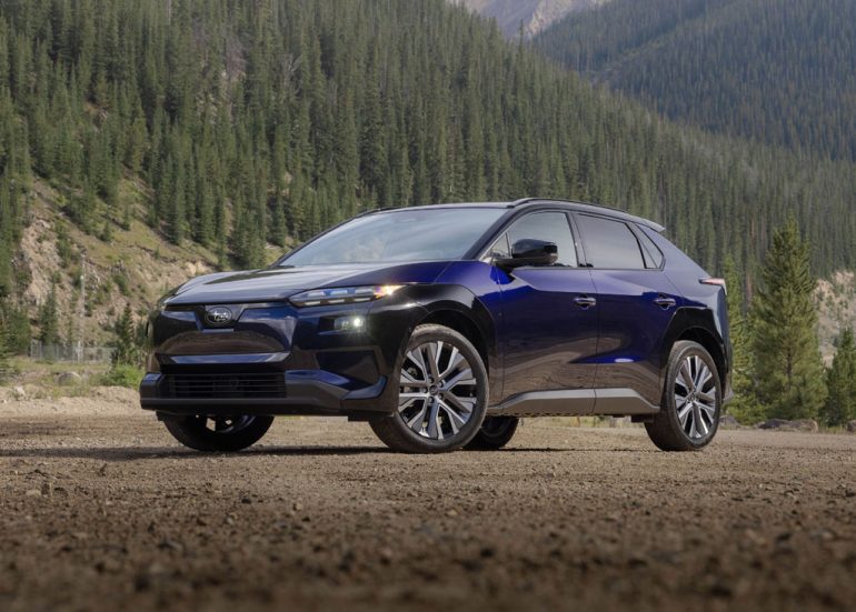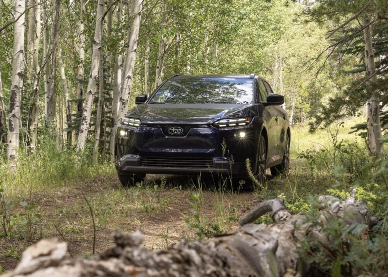 The dual motor setup, found in all Solterra trims, plays to Subaru’s all-wheel-drive theme, as does the somewhat lifted suspension with about 8.3 inches of ground clearance. Subaru and Toyota seemingly did a purposeful design for the Solterra to fit inside the Subaru mold, and it pays off well until you dig inside the interior and find an abundance of Toyota equipment.