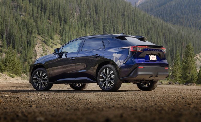 Now with a total of 338 horsepower in the upper-level Limited XT and Touring XT trims for the Solterra (233 hp now in the base Premium and Limited trims), there’s more to appreciate in the Solterra’s improved performance. While Subaru doesn’t list the torque figure, we’d estimate that it is well north of 300 lb-ft of torque, which helps the 4,500+ pound SUV-ish vehicle get up to 60 mph in about 4.6 seconds.