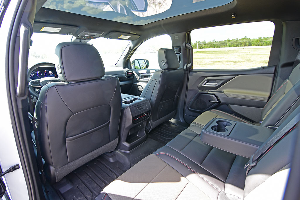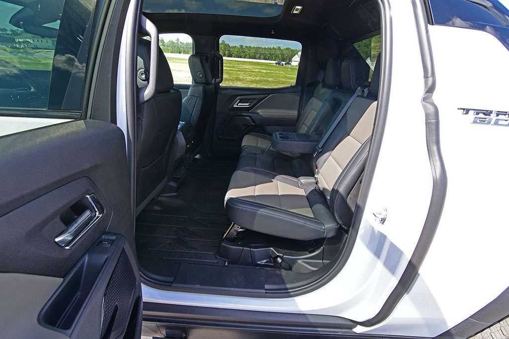 Seating areas are massively sized as the Silverado EV utilizes the platform of other new large GM EVs, such as the new GMC Hummer EV. The plentiful power adjustments and somewhat comfy heated and ventilated front seats permit just the right seating position for most adults, and the rear seating areas have a newfound level of versatility that allows you to fold down the end of the truck bed to flow into the cabin to fit items as long as 11 feet. Such a neat party trick to open the rear seat backing is one of the standout features of the new Silverado EV, making it one of the most versatile pickups on the market.