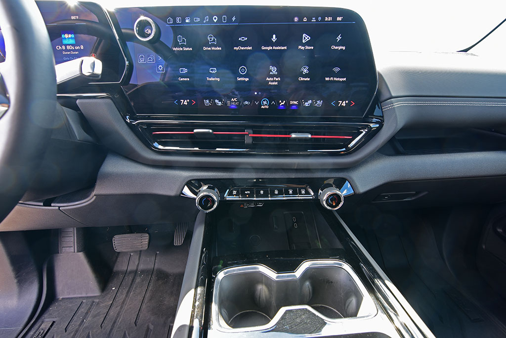 On the side of technology, the new Silverado EV Trail Boss brings home most of the goods that mimic what you find on other new high-trim-level Chevys. As such, you get a 17.7-inch infotainment touchscreen with Google built-in functions and apps, but it lacks Apple CarPlay and Android Auto integration, which continues to be a misstep for General Motors’ new EVs in my opinion. While there are many native Google/Android apps available for the system, it’s still not as intuitive in connectivity for your smartphone as the typical Apple CarPlay and Android Auto integrations. Apart from that one shortcoming that makes things difficult for people like me to integrate the use of their iPhone, there’s still a lot to appreciate in the simplistic setup of the Silverado EV’s tech setup, along with a limited set of physical knobs and buttons for the automatic dual zone climate control. The 11-inch digital gauge driver’s gauge cluster has a few customized screens for displaying a full Google map or other vehicle information taken from the infotainment system.