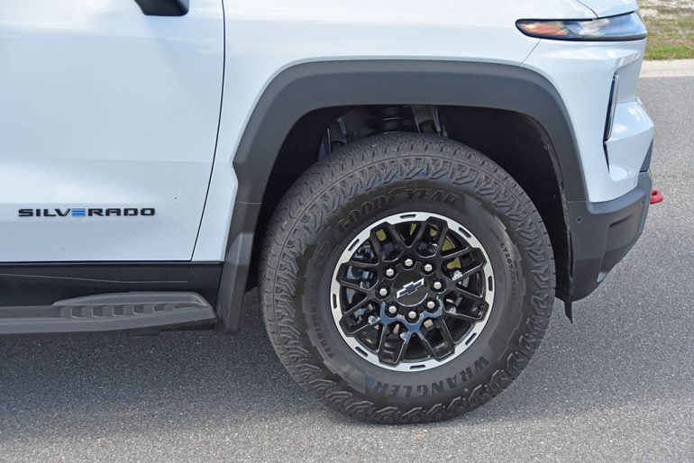 The ride quality of the Silverado EV Trail Boss can become a bit busy at times on the road, but it seemingly feels up to the challenge of off-roading duties thanks to its large 35-inch Goodyear Wrangler Territory tires wrapping 18-inch aluminum wheels. The tires are actually pretty decent on paved road surfaces without too much road noise, which you’ll notice every bit due to the silent drivetrain. Off road, the Silverado EV Trail Boss feels quite capable with its electric drivetrain and off-roading drive modes.
