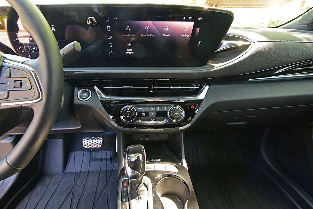 Buick keeps things mostly simplistic for the interior. The dashboard top is soft touch and throughout you find a good amount of hard plastics. The heated front seats prove to be mostly comfy dispite the smaller size while a good seating position is easy to find through the power adjustments of the driver’s seat – the passenger gets manual adjustments. The infotainment unit is somewhat of a simplified version of what you find in new Chevrolet vehicles but with less of a visual quality. However, you still get the typical wireless or USB-C connected Apple CarPlay and Android Auto integration and a actively-cooled wireless smartphone charger.