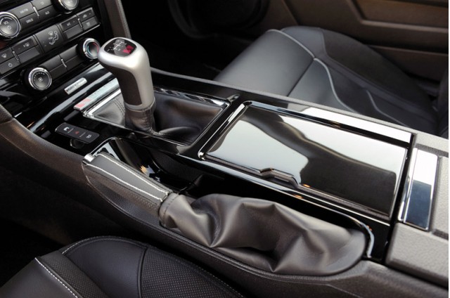 - Saleen shifter with leather-wrapped, aluminum shift knob