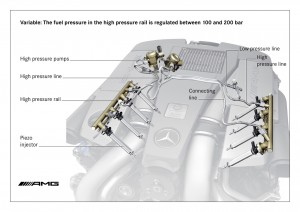 Variable: The fuel pressure in the high pressure rail is regulated between 100 and 200 bar.