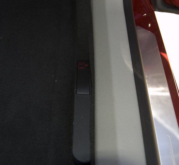 Our CTS Coupe came with the large power-tilt sunroof without the slide functionality. It is somewhat interesting that Cadillac offers such a sunroof that does not slide but only tilts. The CTS Coupe Premium adds the slide function while our Performance trim did not allow it. The touchpad electronic door handle is an interesting feature using proven technology from the Corvette. This eliminates any handles or keyholes from the two doors. The key can still be used to open the trunk via an upside-down keyhole between the tag and the chrome valance. Inside the trunk you will find a release cord to manually open the doors. In the unfortunate event that you are inside of the car during a failure of the electronic door handles, there is an emergency latch on the edge of the floorboard. Don’t worry, the engineers have thought about your personal safety.