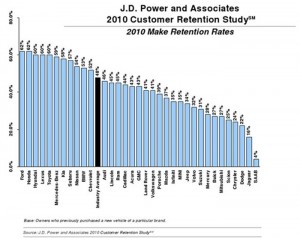 Customer loyalty is very important among auto makers now days especially ever since the economy has tanked and manufacturers such as Toyota were faced with massive recall campaigns. To put things back into perspective J.D. Power and Associates continue to keep us informed about how well certain auto makers are performing. In the area of customer retention they have released a new 2010 Customer Retention Study showing which are buyers are coming back for the same make.