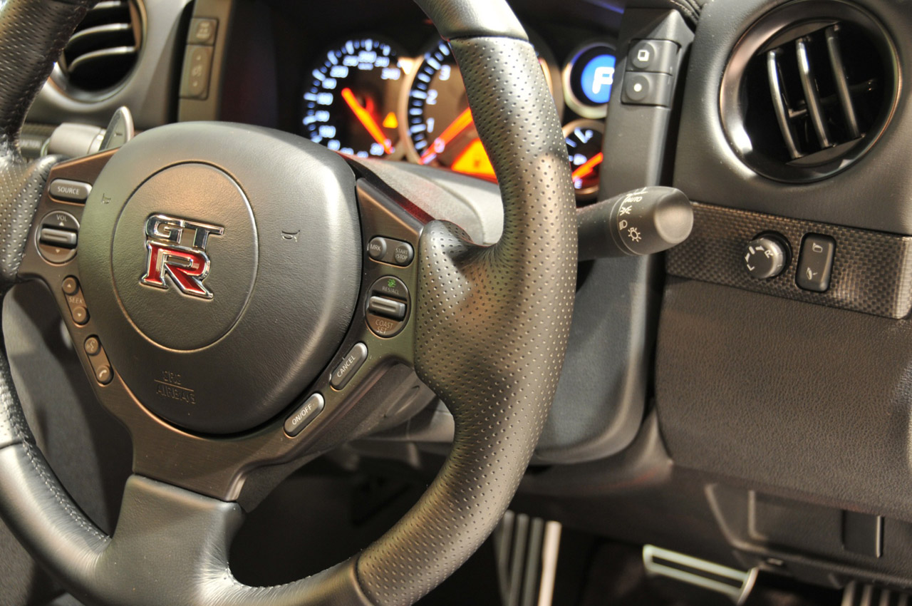 Check out the over-boost light on the dashboard avobe. That is actually a feature that Nissan has included on the new GT-R Spec V. The over-boost will give you some additional torque but the system only engages from a steering wheel button and lasts for about 80 seconds. I guess this is like your little NOS button for your ricer fans. HAHA
