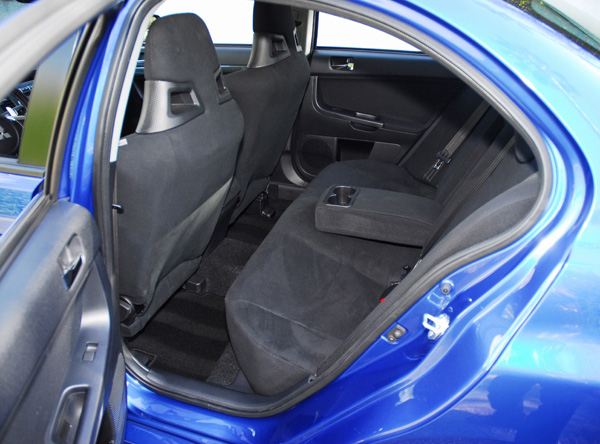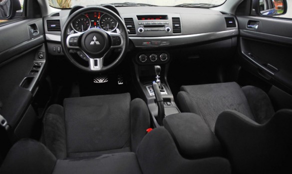 The heart of the SE is the 4B11 T/C engine that gets the pulse pumping hard of even the most jaded enthusiast. This 2.0 liter, DOHC 16-valve four-banger consists of an all-aluminum engine block and cylinder head and a bore and stroke that both measure exactly 86.0mm (3.4in.), making it a ‘square’ design as it bore-stroke ratio is 1.0. Power ratings for this potent engine are 291hp at 6,500rpm and 300lb.ft. of torque at a much lower 4,000rpm. the Mitsubishi Innovative Valve timing Electronic Control system (MIVEC) works on both the intake and exhaust camshafts for optimized power production and cleaner exhaust emissions. This twin-scroll turbocharged and intercooled engine’s compression ratio is set at 9.0:1. The engine revs so quickly and effortlessly to it high 7,000rpm redline that it is scary fun watching the white tachometer needle quickly go up then quickly go down as you hold on for dear life.