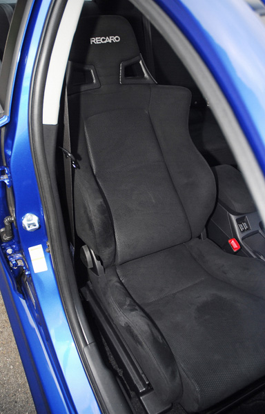 The comfortable and supportive Recaro bucket seats work well for either quick trips or long daily commutes, while a sumptuous-sounding six-speaker 140-watt AM-FM-CD/MP3 audio system wit digital processor, automatic climate control wit micron filter, sporty leather wrapped/tilting steering wheel with cruise control/audio buttons, remote keyless entry, aluminum faced pedals, power windows, variable intermittent wipers/washers, power side windows, power door locks, dual front cupholders, storage slot, storage bin under a padded top, dual visor with vanity mirrors, rear pull-down armrest with dual cupholders, front-door storage slots, dual map lights, grab handles atop each door, 12-volt accessory outlet, thick cut-pile carpeting and signature front/rear floor mats. All controls, levers, switches and buttons are within easy reach and illuminated for safe nighttime driving and helps make extended time behind the wheel very pleasurable.